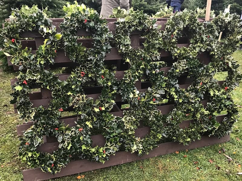 A selection of fresh Holly wreaths and Christmas tree stands are also available.